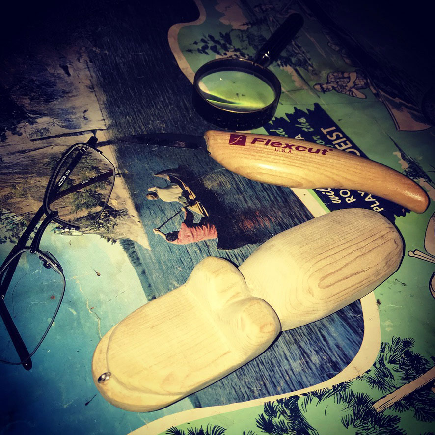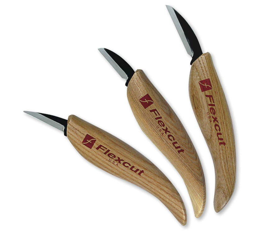 I often get asked via email or over the telephone when someone is placing an order about Flexcut carving tools. I first discovered them about 25 years ago when I was looking for something that didn’t hurt my hand. At the time I had a bad habit of gripping my tools too tightly. This was partially and mostly due to their narrow, straight handle shapes.