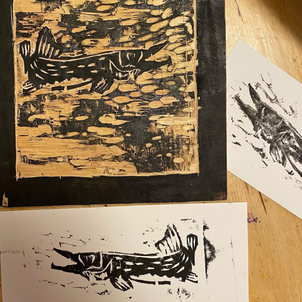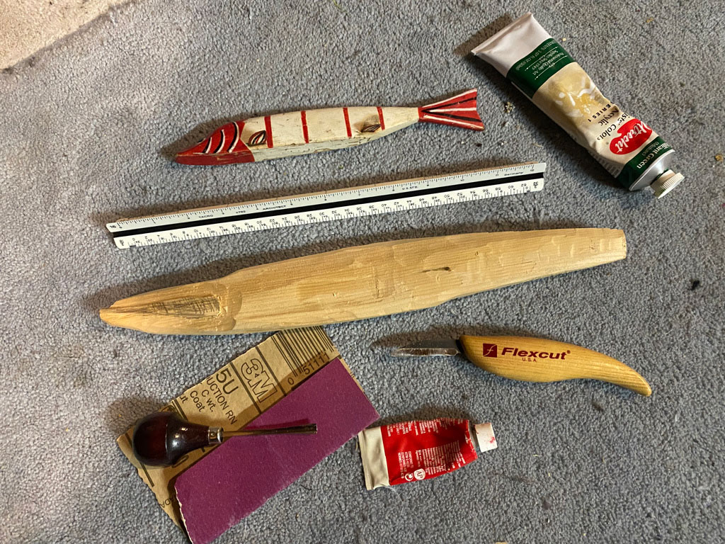 I hand carve and create fishing lures and darkhouse spear fishing decoys. I also make folk art carvings, Christmas ornaments, woodcut art and linocuts for printing. This blog has a lot of pictures because I wanted to inspire you to use your Flexcut carving tools in new ways. I use these tools predominantly on softer woods like white cedar or basswood. They work very well on hardwoods like walnut, butternut and mahogany. I’ve carved some oak and old hardwoods too.