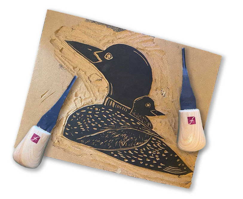 I begin with roughing knives to take off the most wood. Then I follow up with different shapes of the more delicate detail knives. All of these are very durable. Flexcut carving tools are designed to meet a variety of wood carving, wood cut print and linocut print cutting needs. The best advice for Flexcut maintenance is to clean and take the time to sharpen your knives so that they are always at their best before your next use.