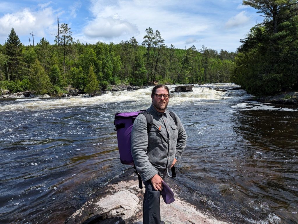 We reached the mouth of the Maligne at around 4:30 pm and the pit in my stomach grew – the river was moving fast from shore to shore, and the first set of falls was pumping. Clearly the river was cresting following the heavy rain and we were approaching it at its most dangerous. The plan was to portage twice and then decide if we could continue down the river, per some advice from the legendary paddler Adam Macht. The approaches to the first two falls were mild, as each had a bay preceding the approach that slowed the suction at the mouth of each falls, much to our delight, but it became apparent to me that the current was too strong on the river for us to be able to back out, and so our decision was made for us: we would have to navigate the Maligne River in flood conditions. We spend the next 4 hours paddling down rocket booster rapids, lined by boulders hiding just beneath the surface, threatening to tear a hole in our canoe or overturn us, lining our canoes down shorelines where water rushed around our legs, inches from drop-offs that would certainly shroud us in currents that we may never return from, approaching high water portages along suction points inches above waterfalls, bushwhacking through thick woods to get around points where the current was overwhelming, and lifting the canoe over trees that had fallen during the storm and blocked the navigable shoreline of the river, while wearing our heavy packs and dealing with the worst bugs on the trip (there were three inch long bugs I’ve never seen before – super sized may flies?) that wanted nothing more than to run down the back of my shirt. That time on the Maligne was hell on earth. I was locked into an expressionless trance where my entire being was focused on the task at hand, locked into the flow of the river, the obstacles around us, every flick of the paddle through the water and every shift and shudder of the canoe as it tried to turn sidewise, threatening to dump us over falls, or the shifting current below rapids slapping at the zero-rockered hull of our Wenonah Minnesota II Canoe – these slaps felt like a hand under the surface of the water grabbing the stern to throw it sideways and then back. The most exhausted I was on the entire trip occurred after this section, not so much from the physical exertion, but from the series of adrenaline dumps and the necessity of peak focus held for four hours straight. Once we reached the portage around Twin Falls, the final falls emptying into Lac La Croix, my nerves were shot and I was completely drained of energy.