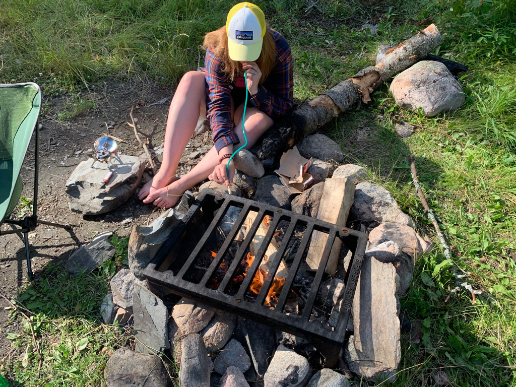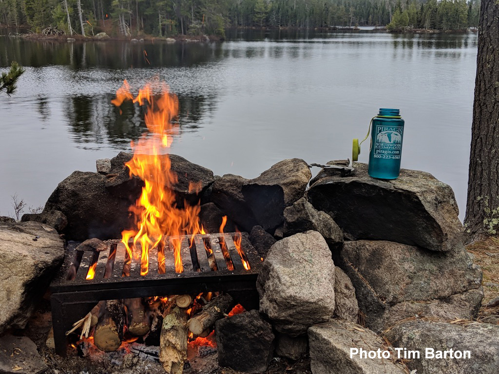Campfires are allowed within designated fire grates unless there is a fire ban. During fire bans, use a camp stove, which is faster, has less environmental impact, and is convenient during rainy weather. When building a campfire, use only dead wood found on the ground and collect it away from campsites, portages, and shorelines. Always extinguish fires completely by drowning them with water and stirring the ashes until they are cold to the touch. Do not ever leave a campfire unattended.