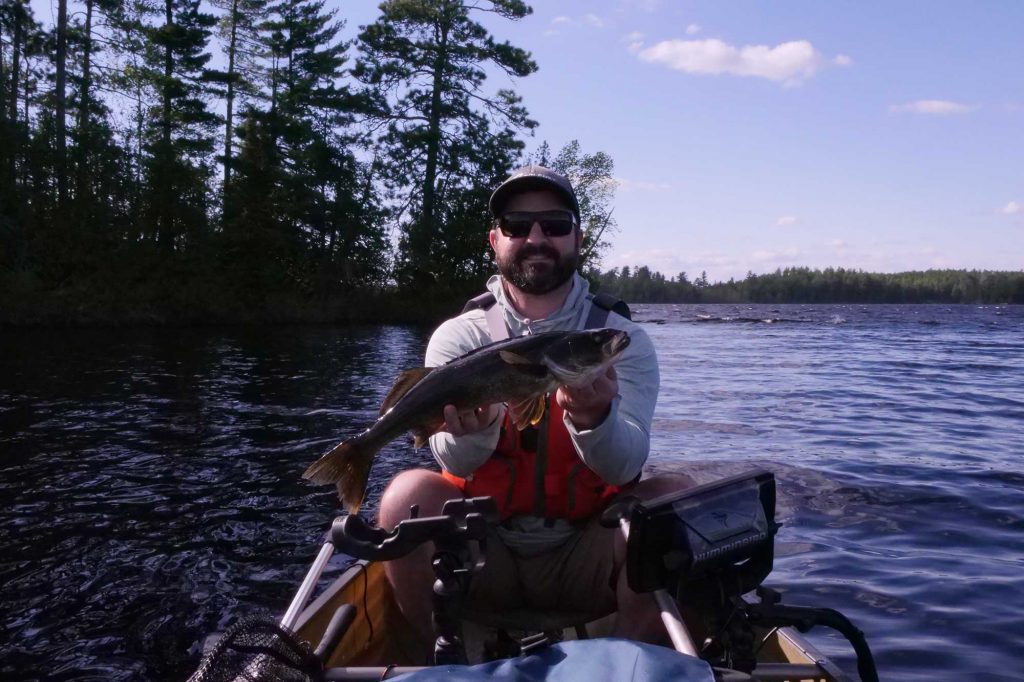 We decided to spend all our fishing energy for the day on Friday Bay, as that gave us the best chance of finally landing that trophy walleye. From 8am – 2pm we spent our time trolling and drifting our way back to the portage at the south end of Friday Bay. We had the most success fishing a series of rocky islands surrounded by a boulder field and steep drop-offs in 12 feet of water (offshore structure seemed to be holding the larger female walleyes who were likely looking for large meal to recover from spawning, moving water seemed to contain larger numbers of the smaller males). Again, the numbers weren’t there, but the average size was great. We caught another 15-20 fish, able to land a few after noon that we cleaned and packed out with us.